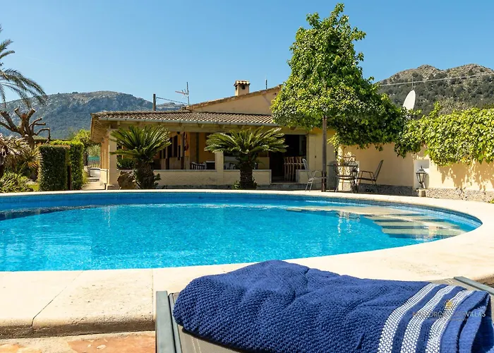 De 0-slaapkamer Villa La Sort Llarga, Casa De Campo Para 6 Personas Pollença heeft een terras met uitzicht op de berg en ligt op 48 minuten rijden van de luchthaven Palma de Mallorca.